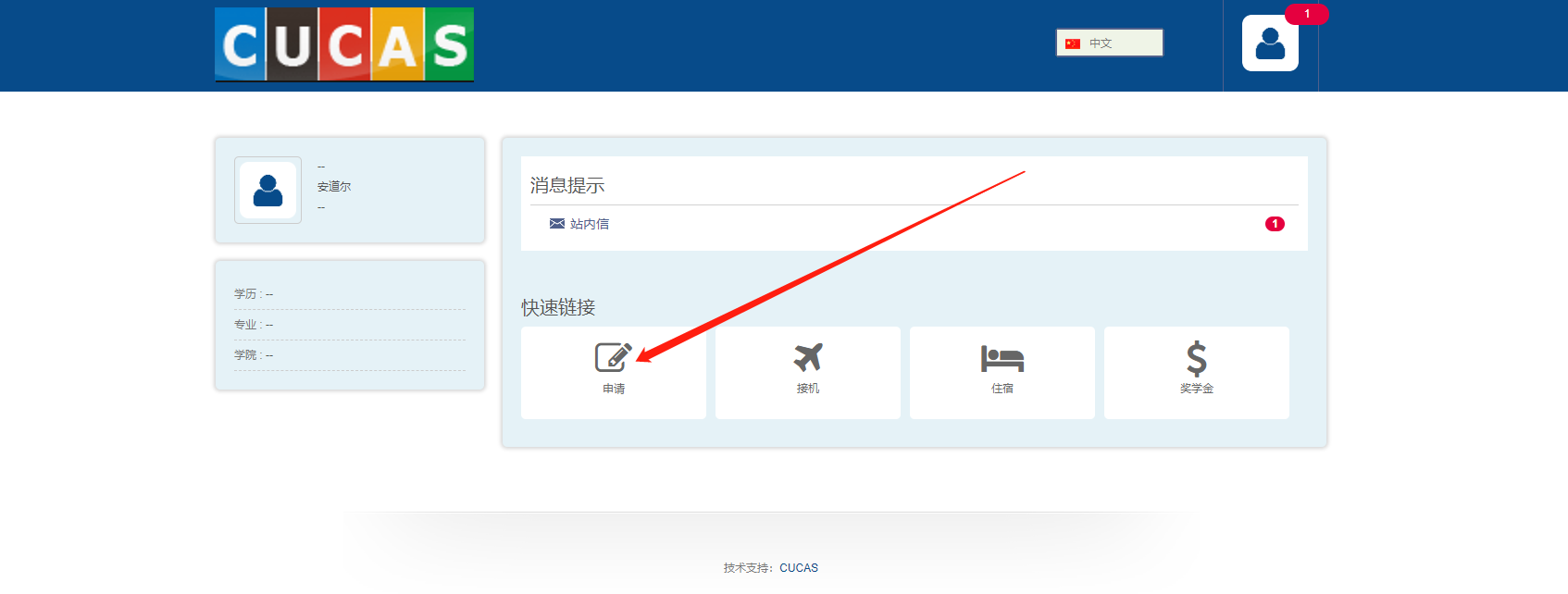 5、登录系统后,点击“申请”,就可以进入申请了。