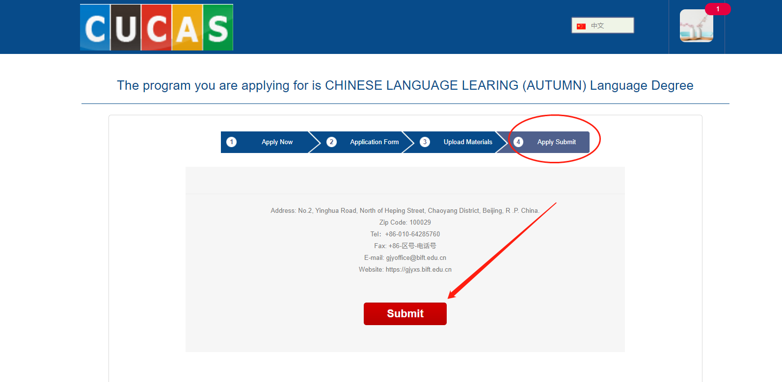 10、In the “Apply Submit” page, you need to submit your application.