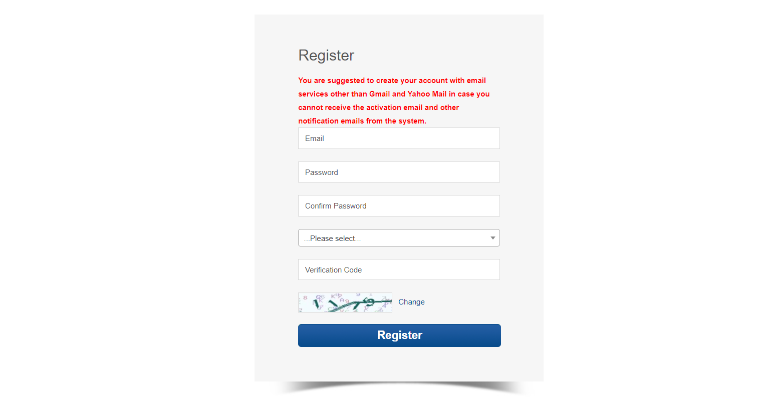 2、According to the required procedures, pleases use your E-mail to register.