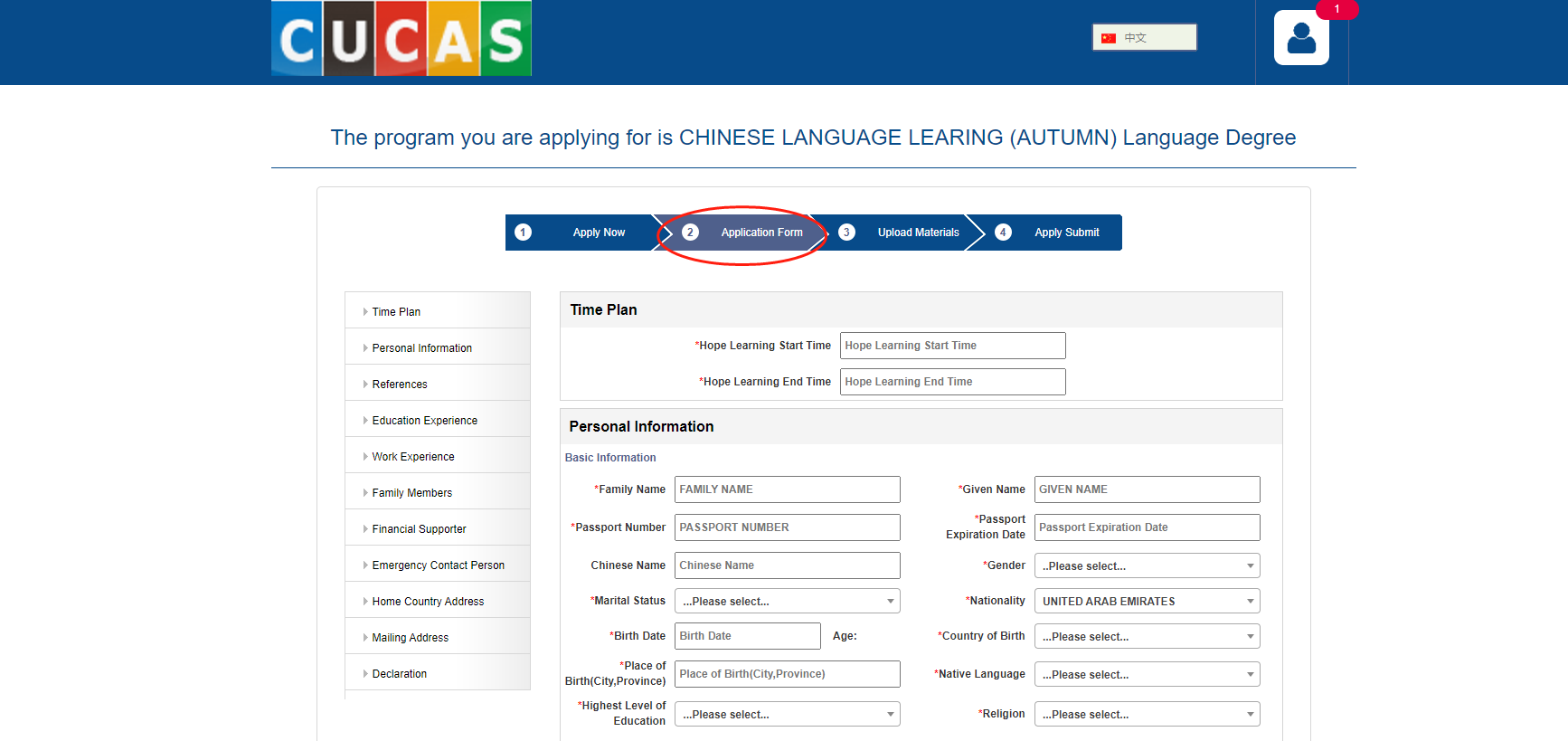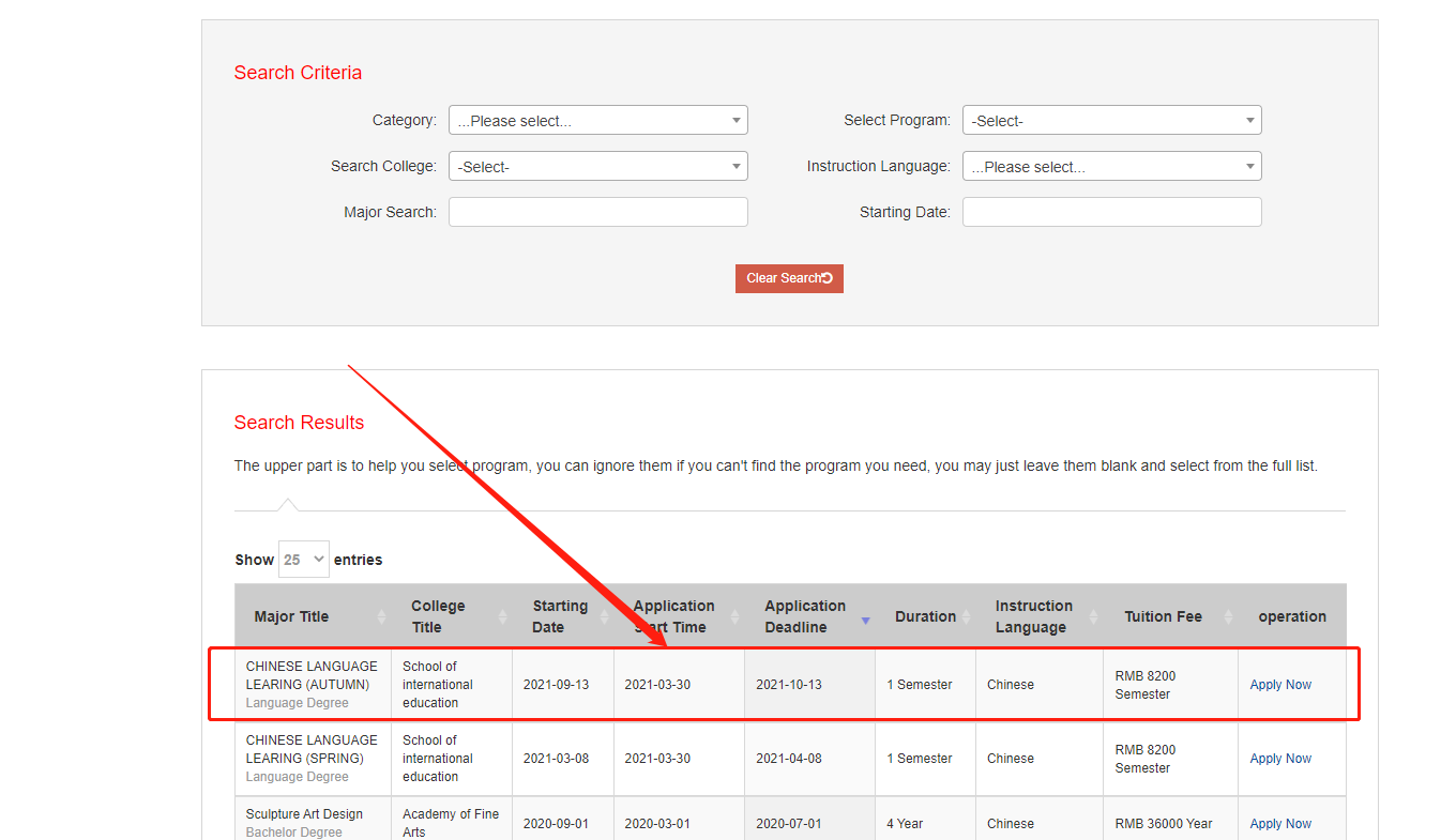 7、After you choose the major and click the “Apply Now”, the page will turn into “Application Form” page.